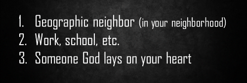 - Try to think about three people who are not in any meaningful relationship with the Lord and are not likely to show up at church on Sunday. Think about people you know but do not know very well...or would like to get to know. Think about people that God lays on your heart for whatever reason.