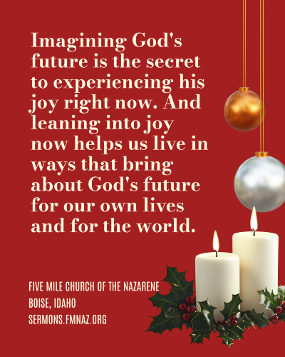This Advent season, learn to see with kingdom eyes rather than human eyes. Remember that imagining God's future is the secret to experiencing His joy right now, and leaning into joy today helps us live in ways that bring about God's future for our lives and our world.