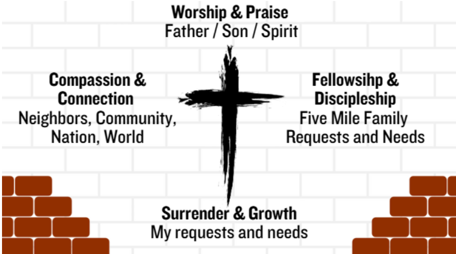 - Follow a structure - Consider a "cruciform prayer" pattern:
